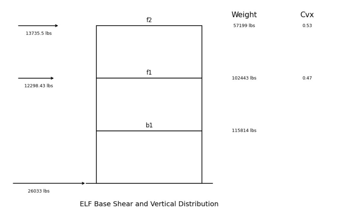 With the above values, we are able to calculate the base shear V = 26033.93 lbs.