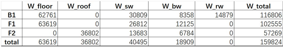 We also calculate the effective seismic weight W for each floor and the entire building: