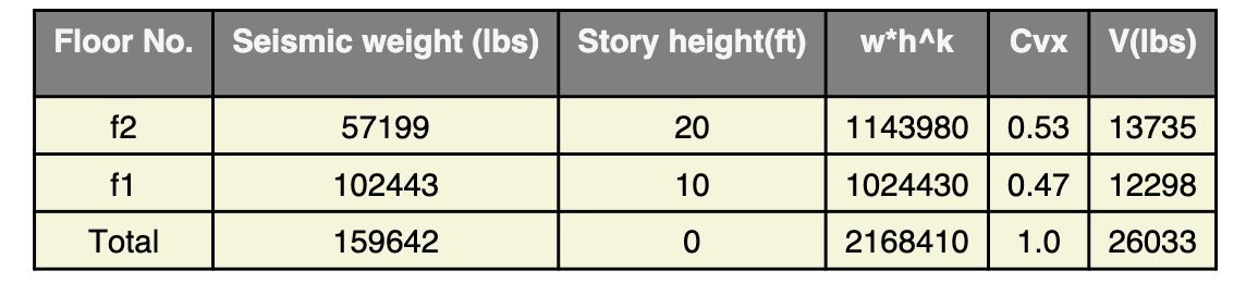 Now that we have derived the base shear, we then need to distribute it to each floor following ASCE 7-16 Eq. 12.8-11 and Eq. 12.8-12