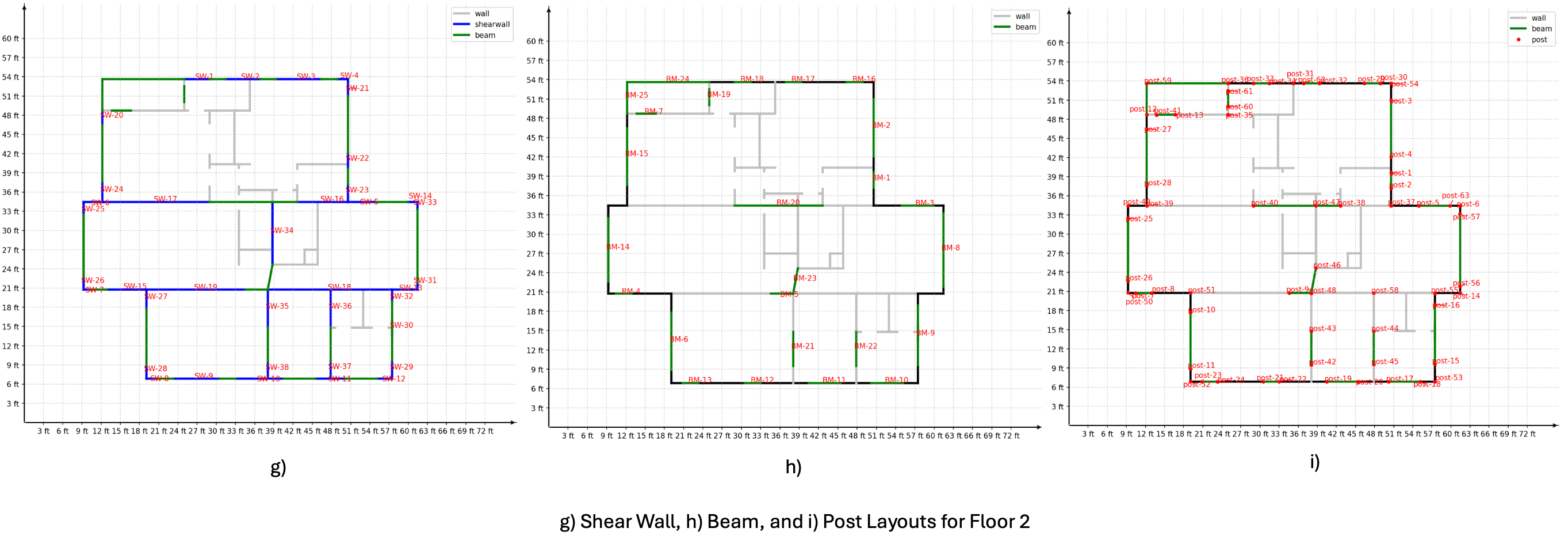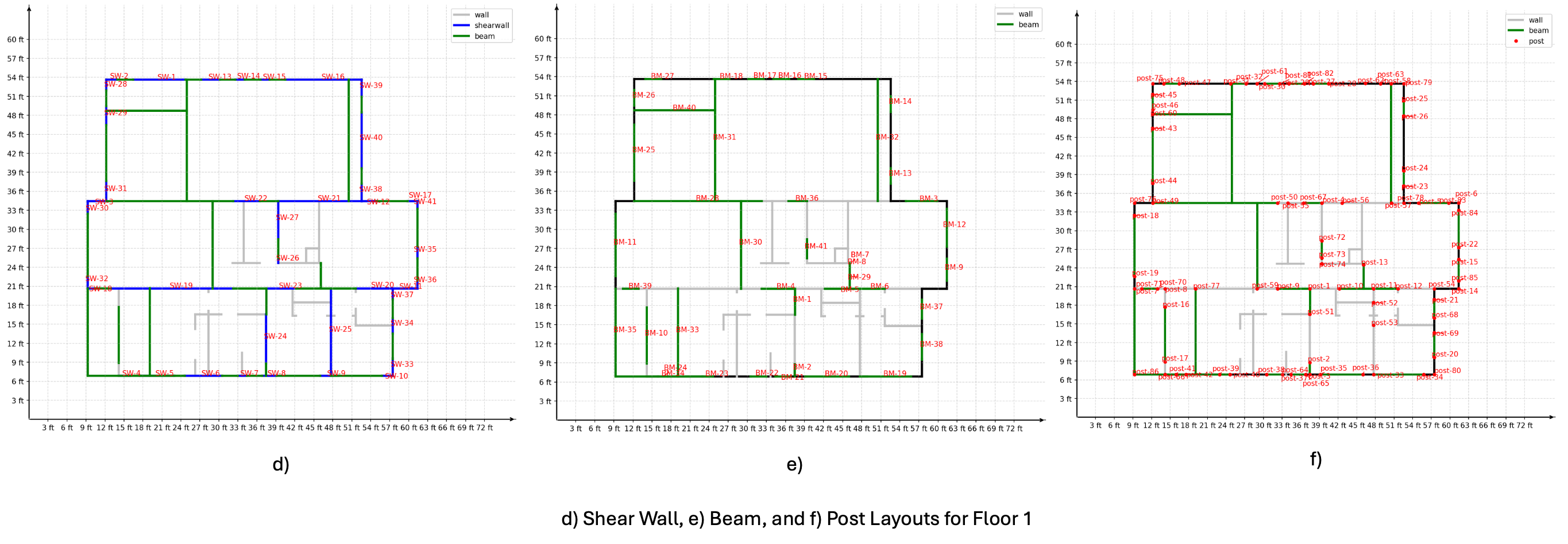 Referencing to these shear band layout, our Generative AI engine therefore proposes layouts of shear walls, beams and posts that actually form these shear bands, as shown in Calculation Sheet.