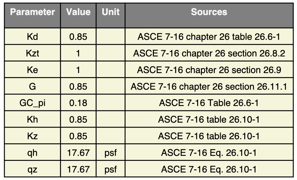 For this project, below are the calculation results shown on page 12 of Calculation Sheet, including Kz, Kzt, qz and GCpi .